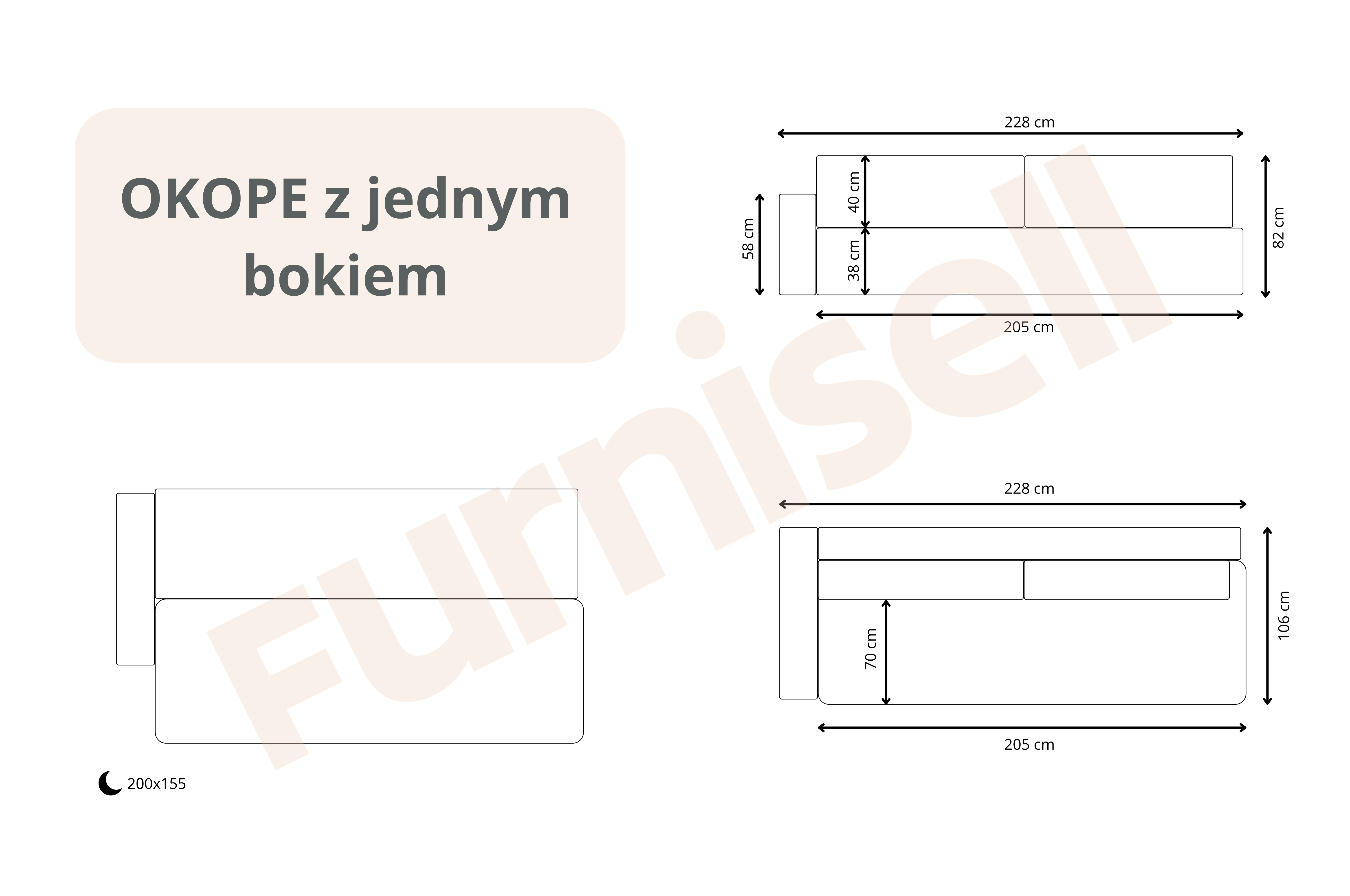 Kanapa OKOPE z jednym bokiem, funkcją spania oraz pojemnikiem na pościel!