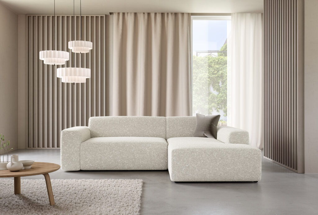 - Tył obity tym samym materiałem – dzięki temu mebel może stać wolno i godnie prezentować się na środku salonu.