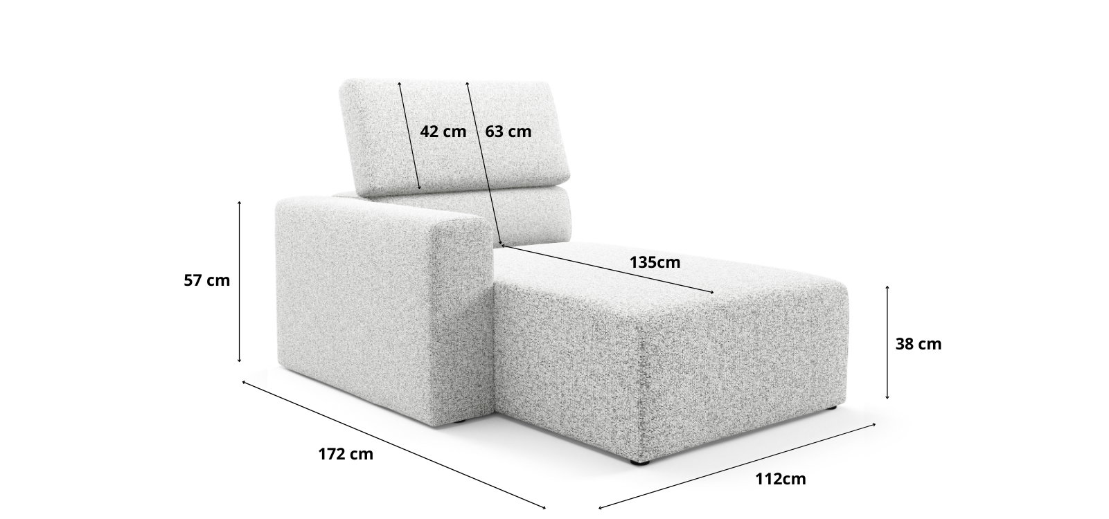 - Wymiary: szerokość 112 cm, głębokość 172 cm, wysokość 80/97cm
