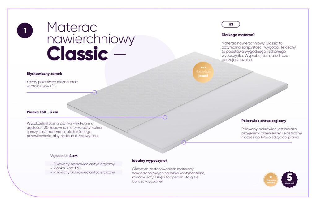 Materac nawierzchniowy topper CLASSIC:
