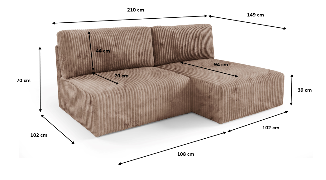 - Narożnik jest uniwersalny! Zmieniaj dowolnie stronę z lewej na prawą.