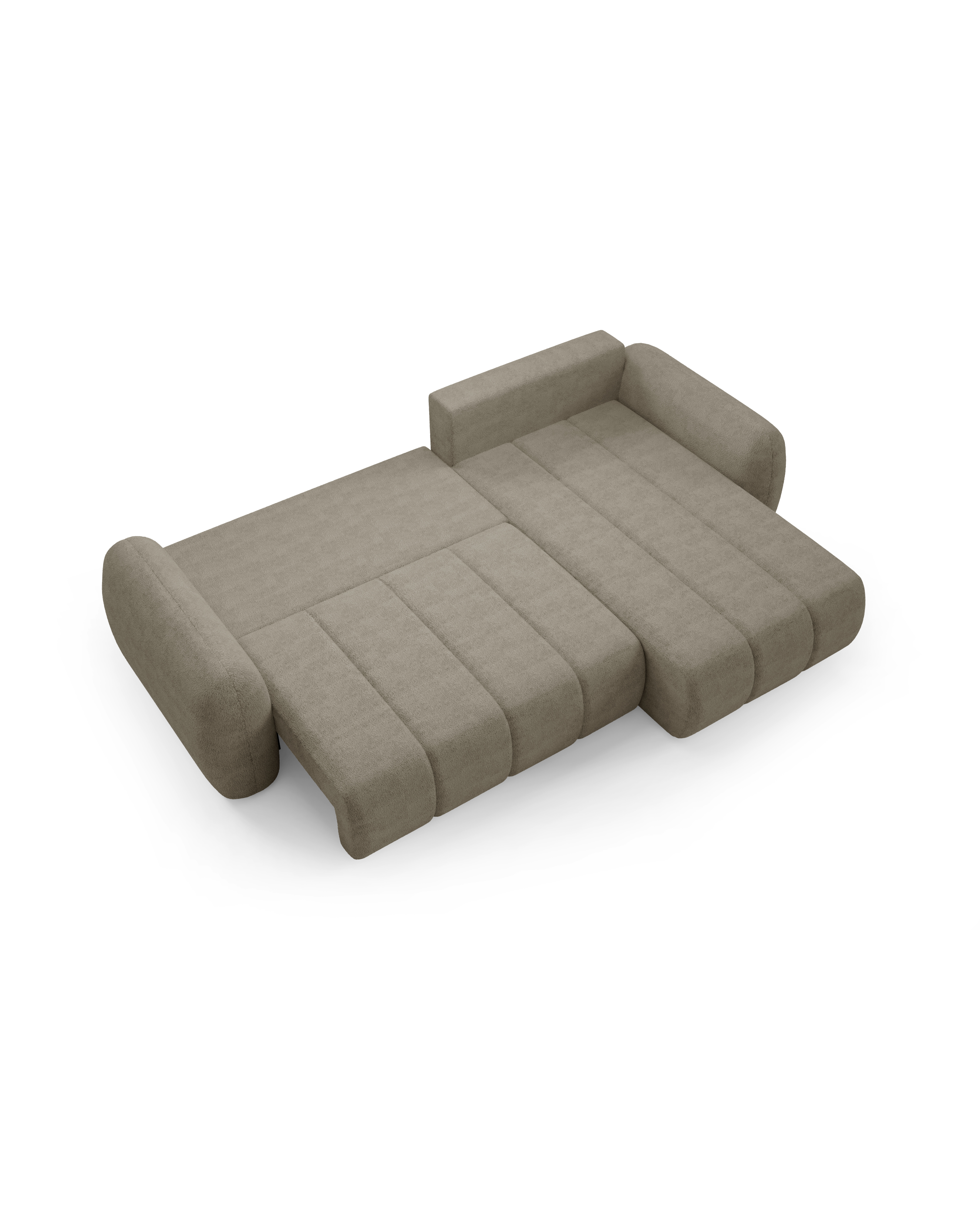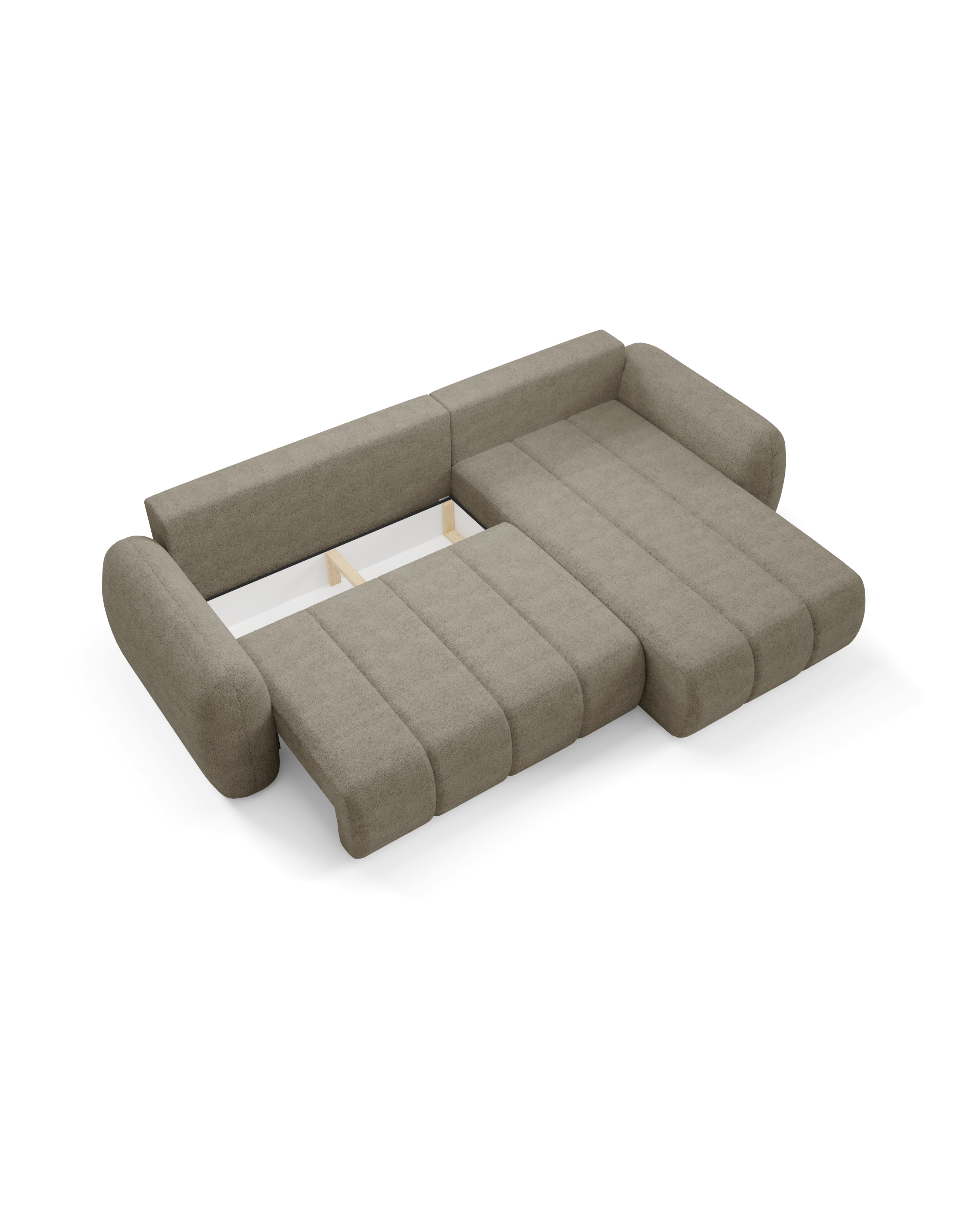 Narożnik CONTII L Premium to elegancki mebel, który łączy nowoczesny design z maksymalną funkcjonalnością. Wykończony miękką w dotyku tkaniną bouclé (baranek) nadaje wnętrzu wyjątkowej przytulności i stylu. Dzięki funkcji spania z powierzchnią 240 × 140 cm narożnik łatwo zamienia się w wygodne łóżko, a praktyczny pojemnik na pościel zapewnia dodatkowe miejsce do przechowywania. Mechanizm DL automat sprawia, że rozkładanie jest szybkie i bezproblemowe.