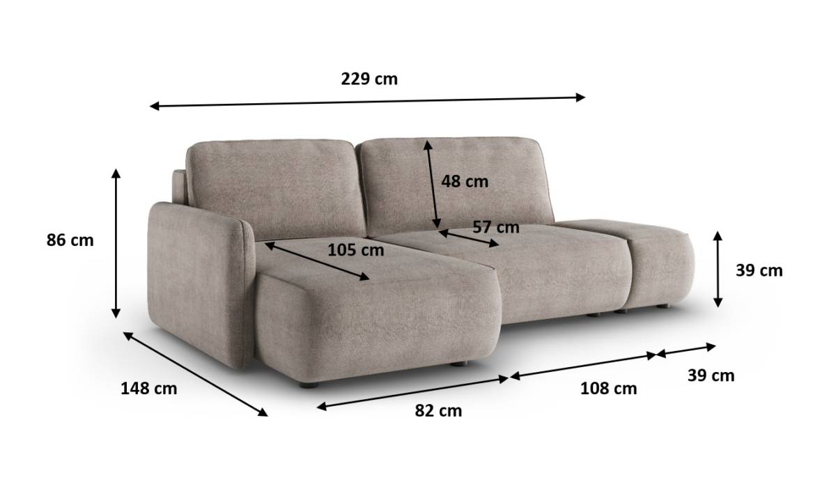 Narożnik CREMONA L z funkcją spania i pojemnikiem na pościel!