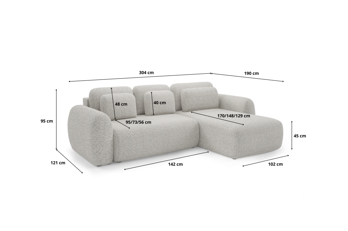 Ten narożnik rozkładany łączy w sobie styl i praktyczność. Wystarczy kilka chwil, by zamienić go w wygodne łóżko, zapewniające komfortowy sen. Dodatkowo wyposażony jest w pojemnik na pościel, który pozwala na utrzymanie porządku i pełne wykorzystanie przestrzeni. Wersja premium narożnika Falco L to gwarancja najwyższej jakości – od starannie dobranych, trwałych tkanin, po solidną konstrukcję i miękkie, sprężyste wypełnienie siedzisk. Każdy detal został dopracowany z myślą o maksymalnej wygodzie i estetyce.