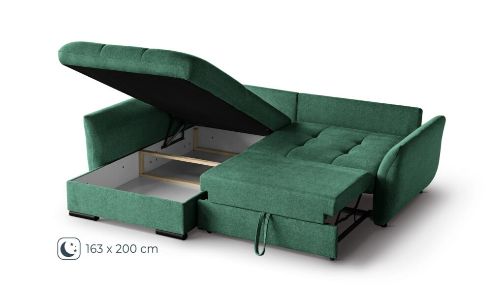 - Funkcja spania – powierzchnia spania 200 x 163 cm zapewni komfortowy sen nawet dla dwóch osób