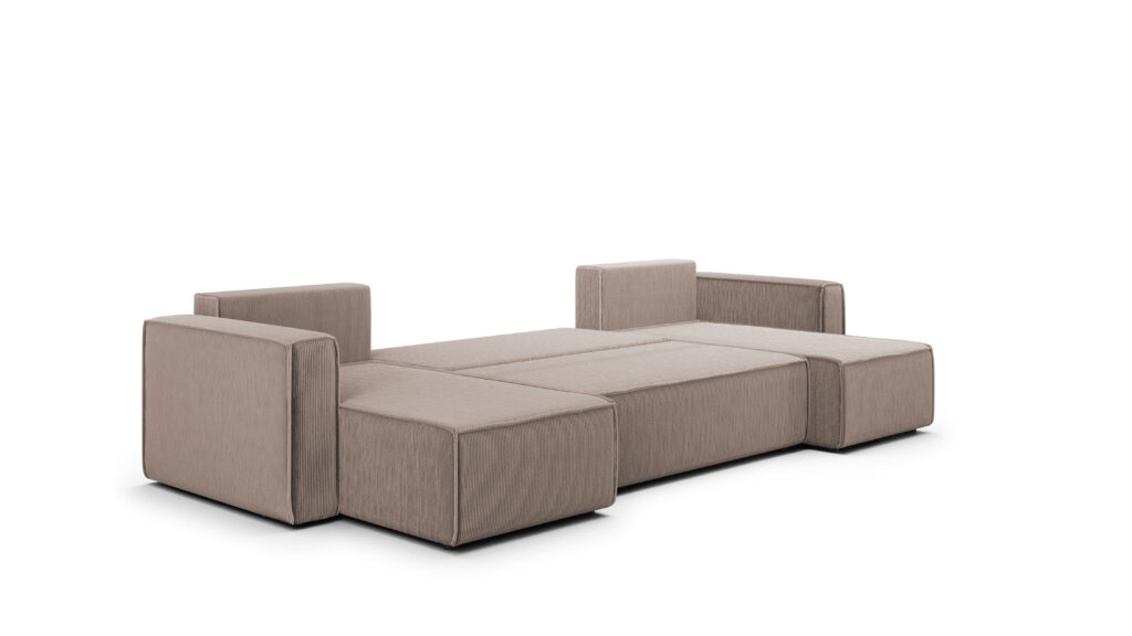 - Tył obity tym samym materiałem – dzięki temu narożnik może stać wolno i godnie prezentować się na środku salonu