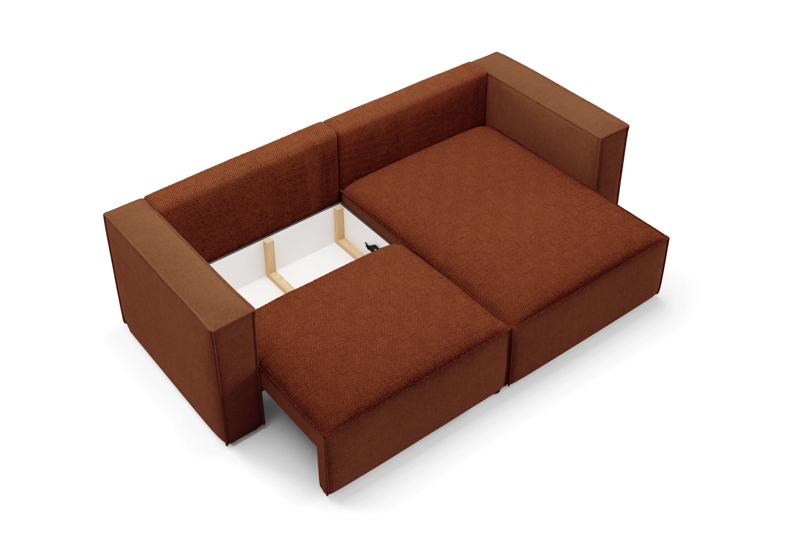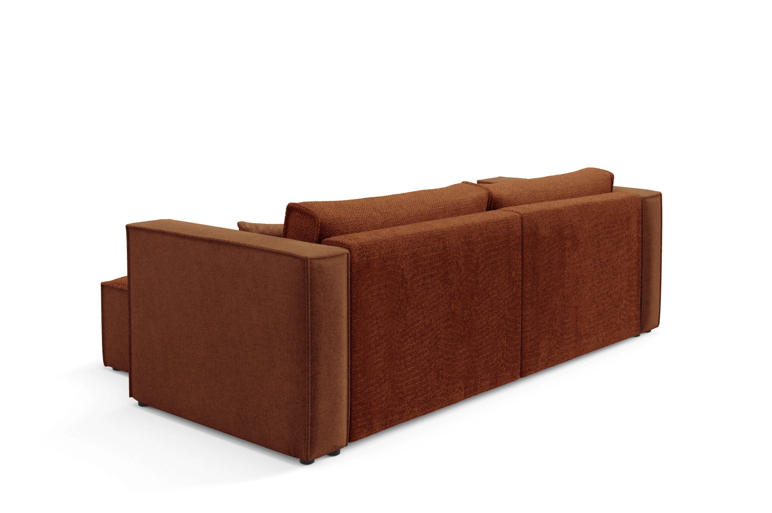 - Tył obity tym samym materiałem – dzięki temu narożnik może stać wolno i godnie prezentować się na środku salonu