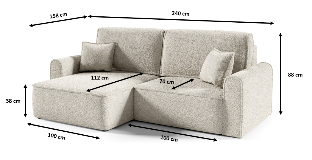 - Funkcja spania – powierzchnia spania 200 x 135 cm zapewni komfortowy sen nawet dla dwóch osób