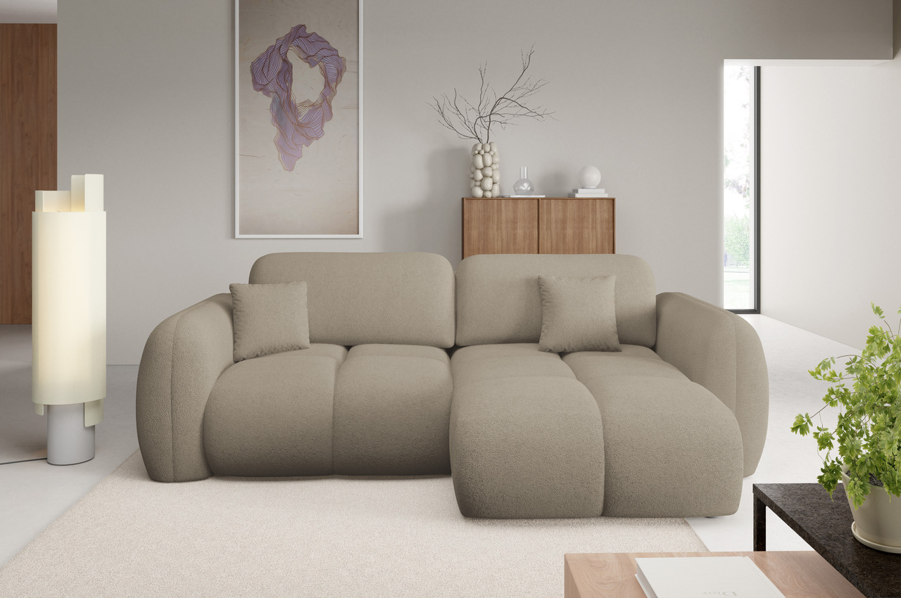 PILLOW to narożnik rozkładany, który w kilka chwil zamienia się w wygodne miejsce do spania, oferując nie tylko piękny wygląd, ale też praktyczność na co dzień. Wersja premium została wykonana z najwyższej jakości materiałów – odpornej na ścieranie, przyjemnej w dotyku tkaniny oraz solidnej konstrukcji zapewniającej długowieczność mebla. Wypełnienie gwarantuje wyjątkową miękkość i sprężystość, dzięki czemu każdy odpoczynek na sofie PILLOW to chwila pełnego relaksu.