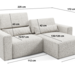 • Wymiary: szerokość 225 cm, głębokość 172 cm, wysokość 80/97cm