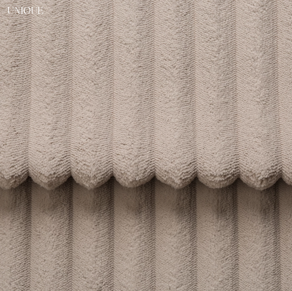 AMBIENCE – to synonim luksusu i funkcjonalności, oferujący szeroki wachlarz zastosowań zarówno domowych, jak i publicznych przestrzeni. Dzięki swojej unikalnej strukturze z tłoczonymi paskami o szerokości około 2,5 cm, tkanina ta wyróżnia się na tle innych materiałów. Każdy pasek pokryty jest długim, miękkim włosem, co dodaje tekstury oraz miękkości, sprawiając, że Ambience jest idealnym wyborem dla tych, którzy cenią sobie elegancję i komfort.