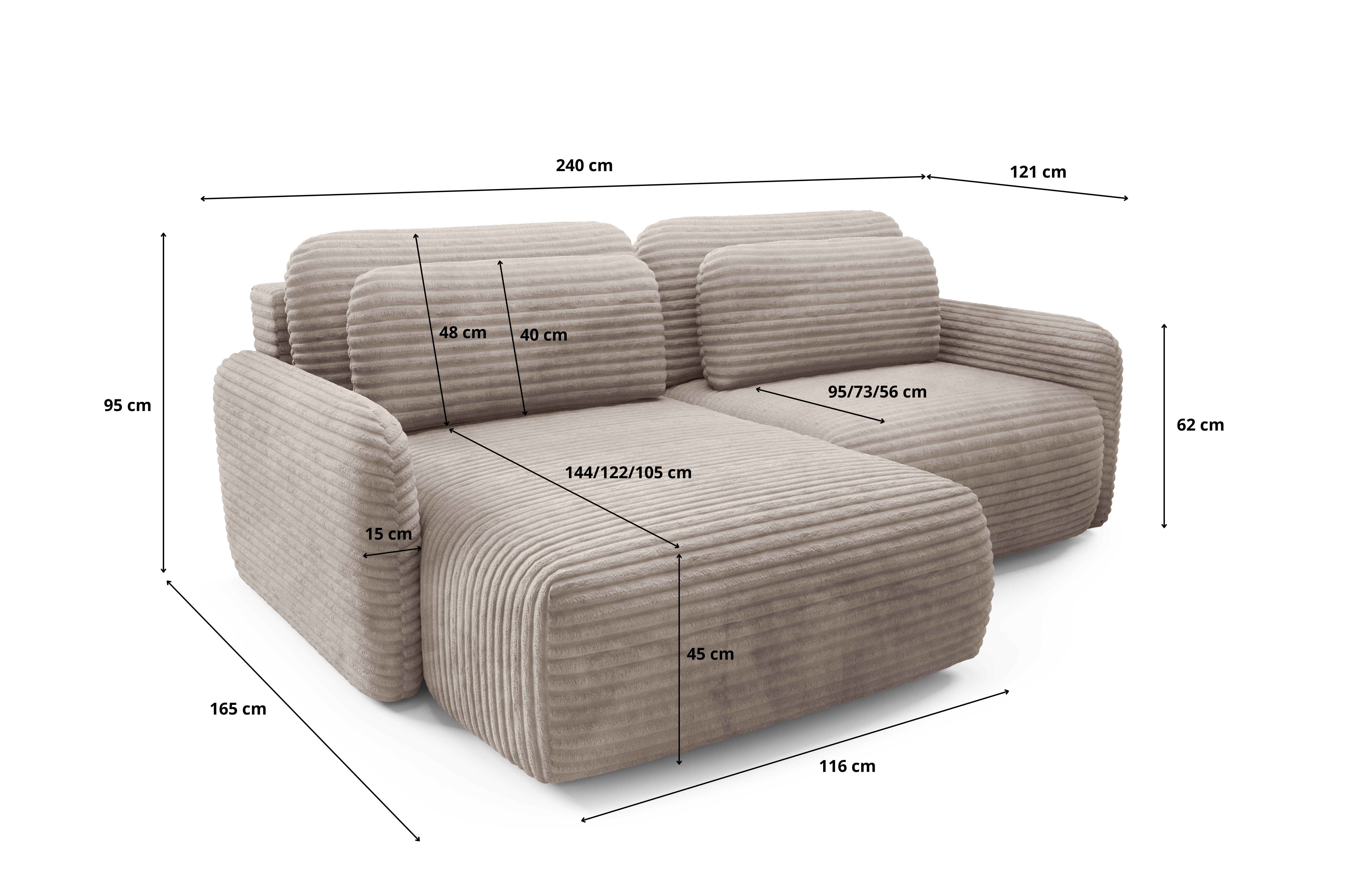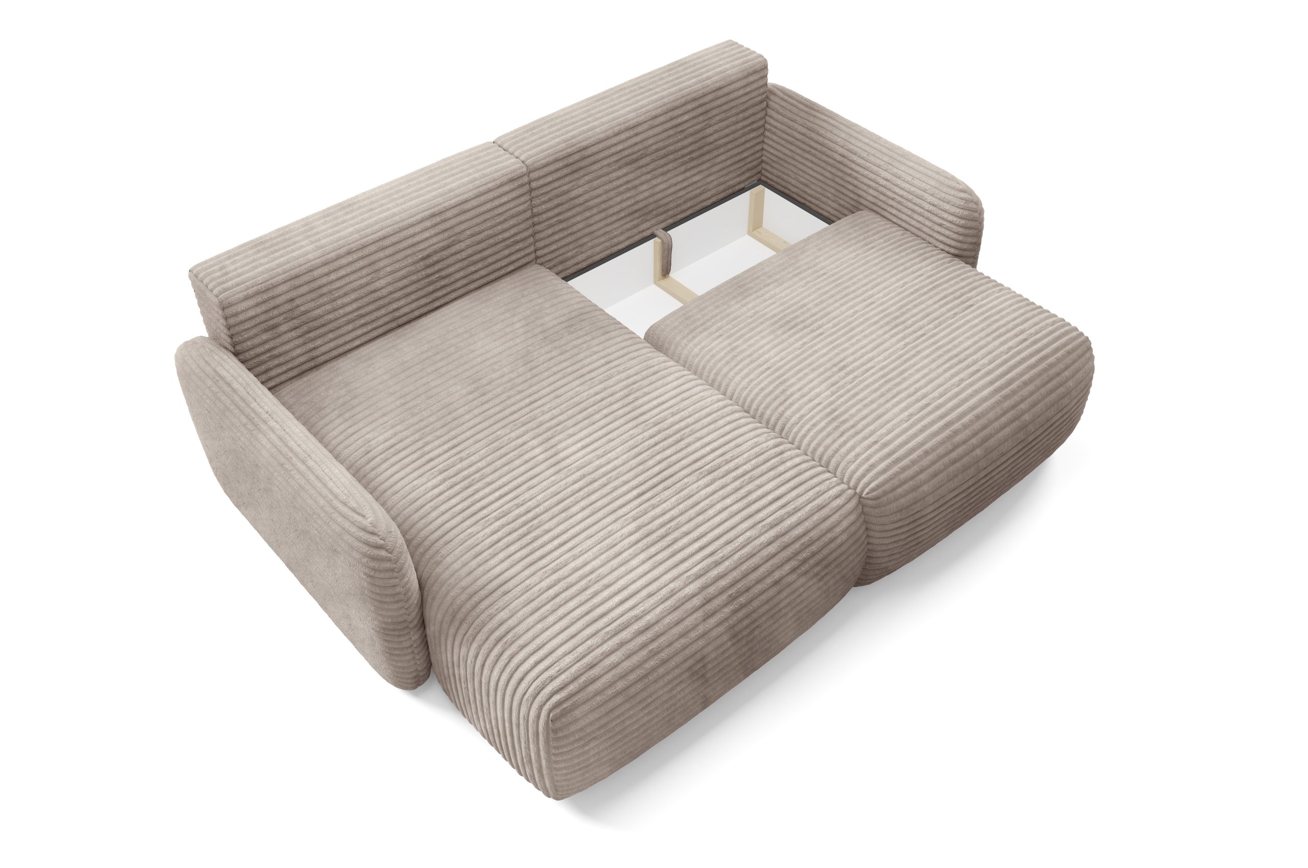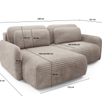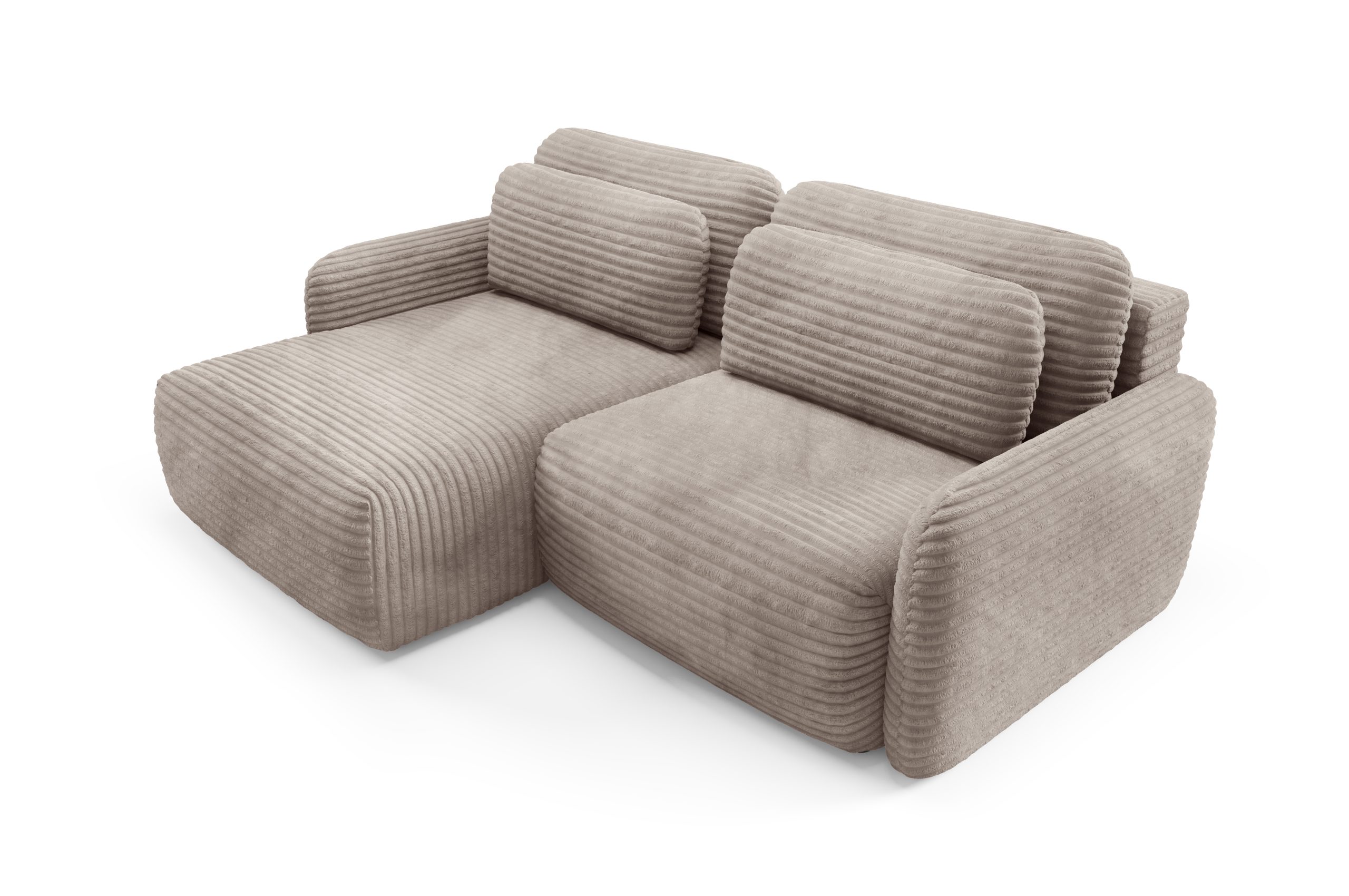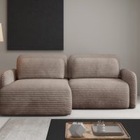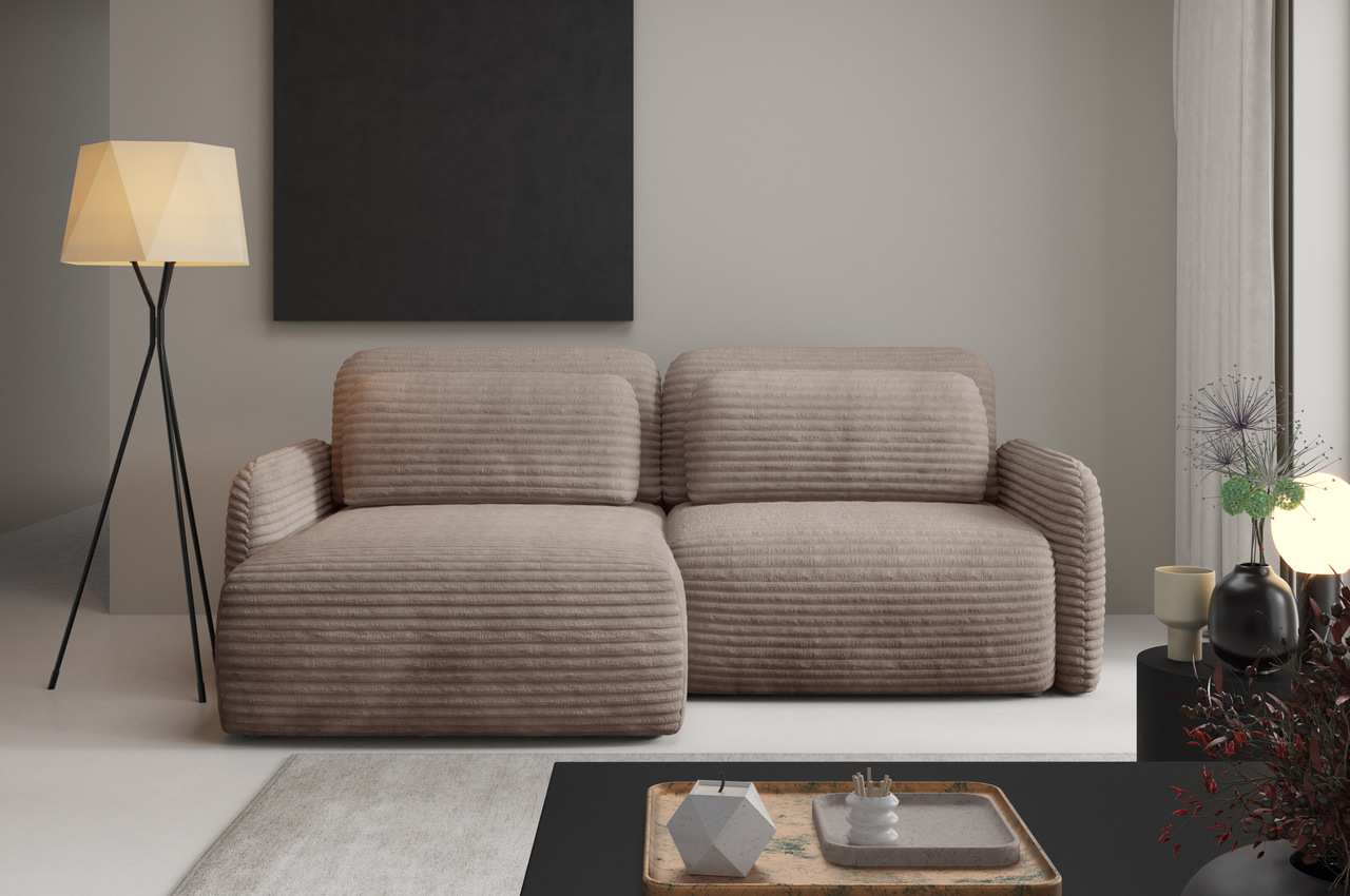 Narożnik sztruksowy CLOUD Premium – obłe kształty, funkcja spania, pojemnik – Wybierz szerokość