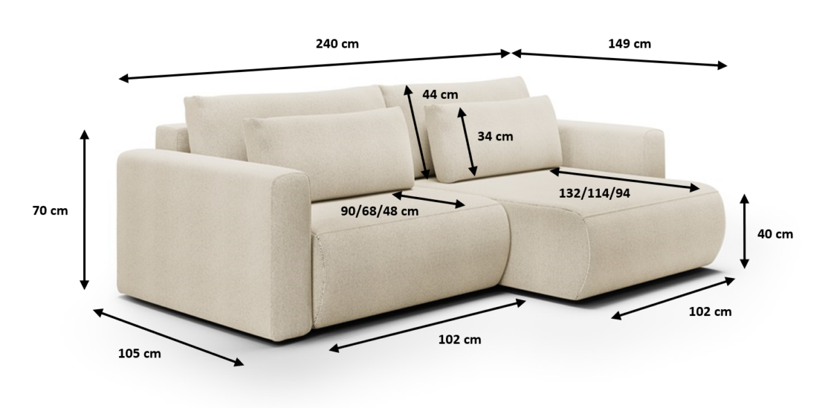 Tapicerowany innowacyjną tkaniną hydrofobową, Welly Mini skutecznie opiera się wilgoci i zabrudzeniom, co czyni go idealnym wyborem dla rodzin z dziećmi, właścicieli zwierząt lub osób, które po prostu cenią łatwe utrzymanie czystości. Subtelne pikowania siedziska oraz miękkie poduszki oparciowe zapewniają komfort, który docenisz po długim dniu. Mimo kompaktowych rozmiarów narożnik oferuje również funkcję spania – w kilka chwil zamienia się w wygodne łóżko, a pojemnik na pościel ułatwia organizację przestrzeni.