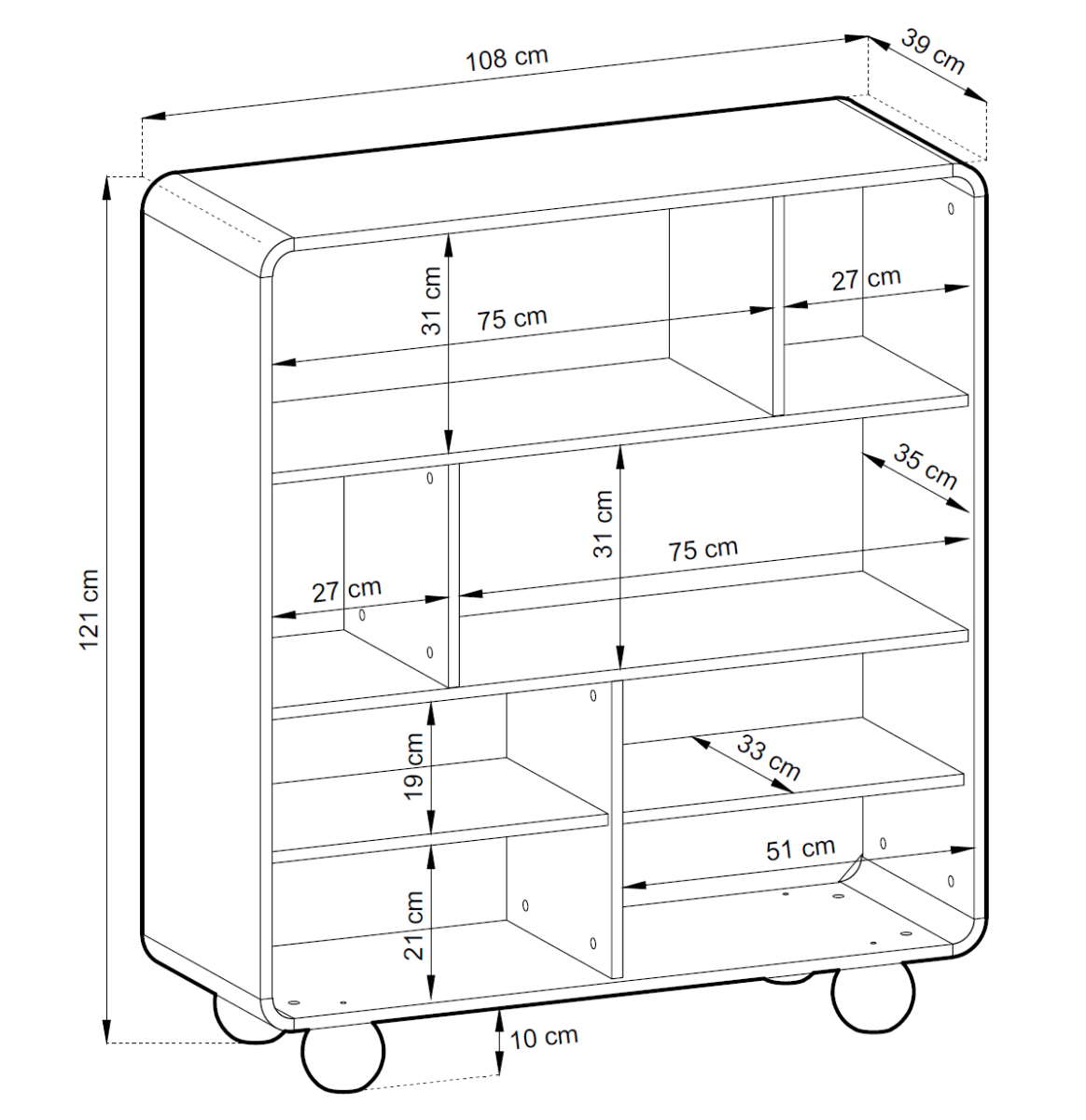 - Wytrzymała konstrukcja oparta na ukrytych łącznikach gwarantuje estetyczny wygląd i stabilność bez widocznych śrub