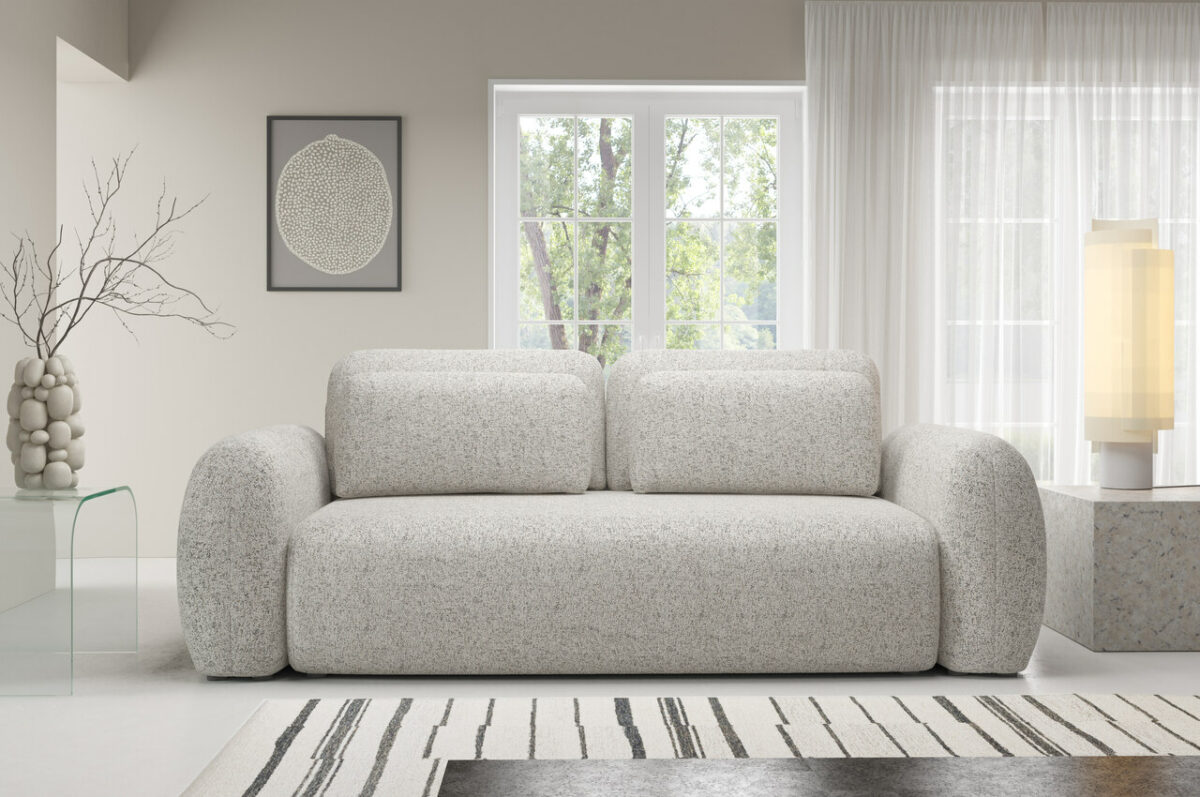 Obłe kształty, miękka linia i minimalistyczna forma sprawiają, że sofa Falco idealnie wpisuje się w aktualne trendy wnętrzarskie, takie jak styl japandi, soft loft czy modern organic. Stonowana kolorystyka i przyjemna w dotyku tkanina sprawiają, że mebel doskonale komponuje się z nowoczesnymi aranżacjami.